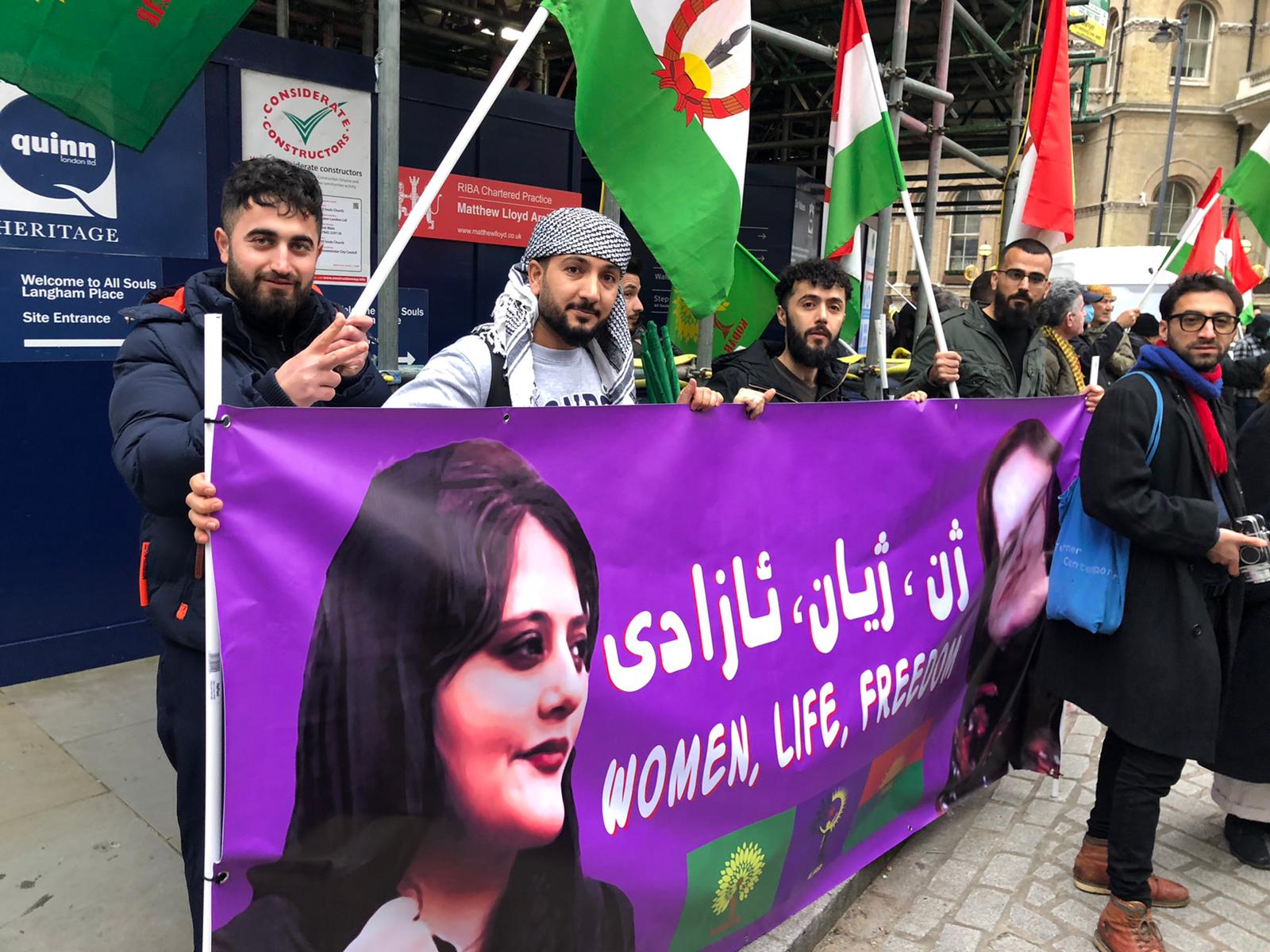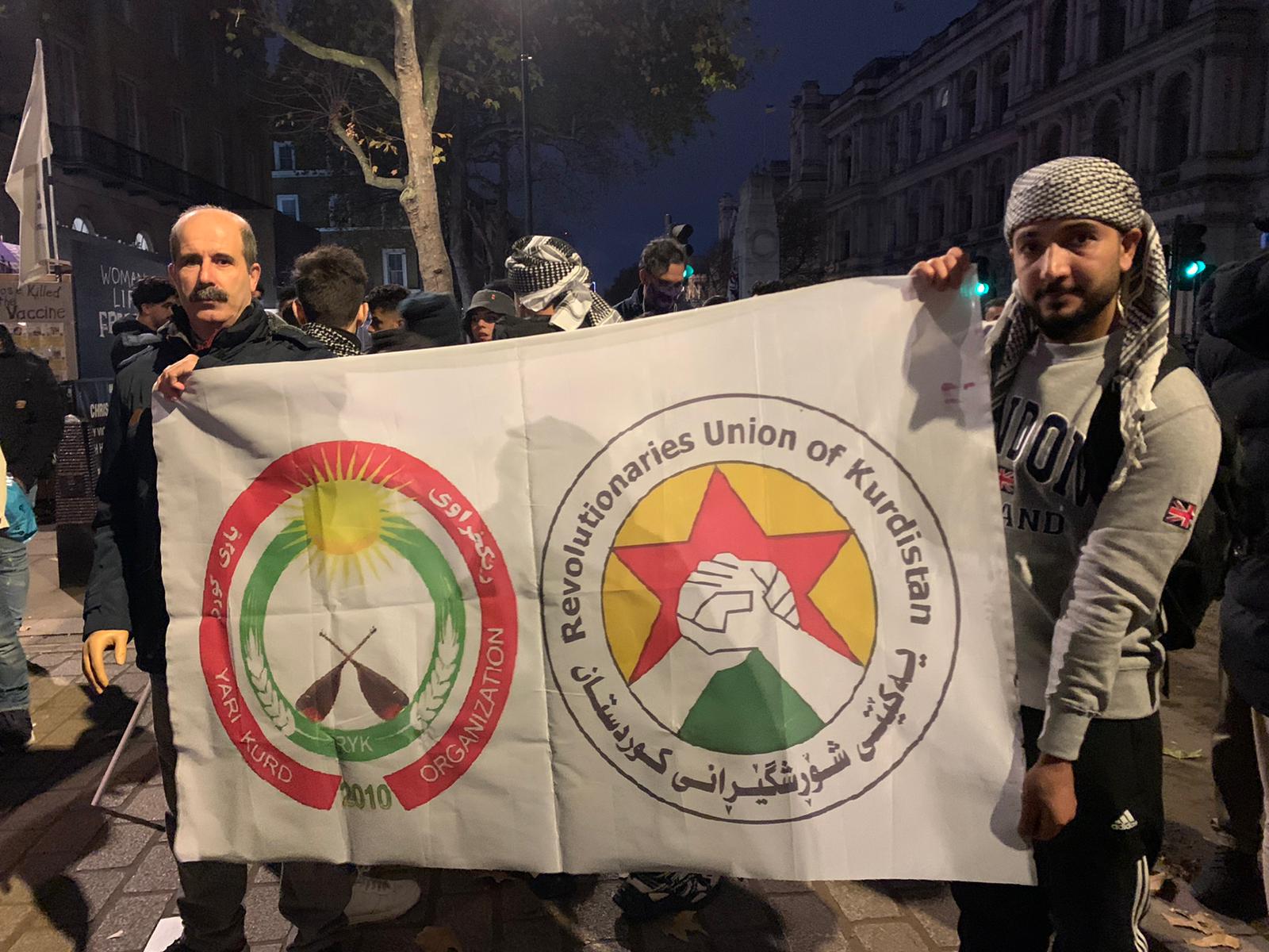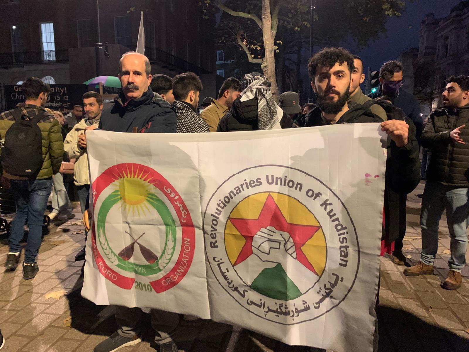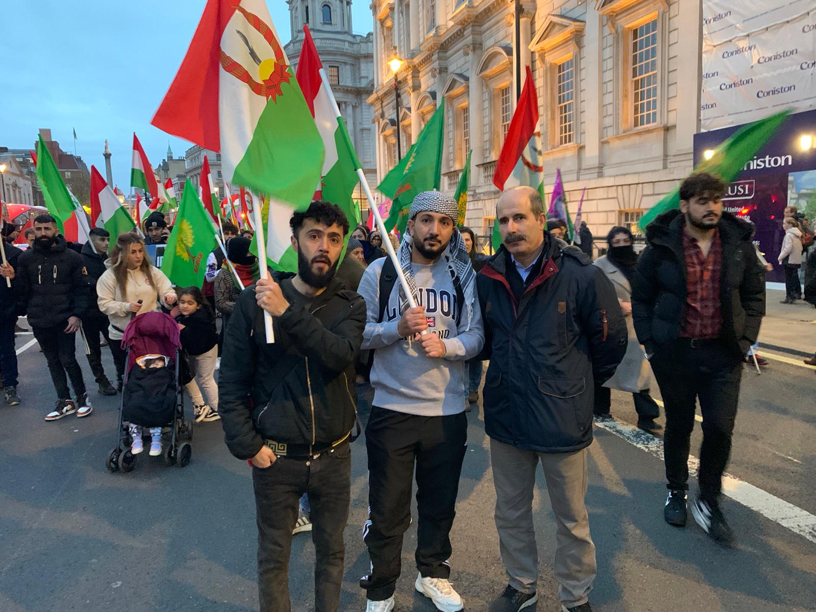 ئەمڕۆ شەمە رێکەوتی ٥ی سەرماوەز٢٧٢٢ بەرانبەر بە ٢٦/١١/٢٠ ٢٢ بە مەبەستی پشتوانی لە گەڵی ڕاپەریوی کورد و گەڵانی کە و هەر وەها و دەسدرێژی ڕژیم بۆ دەرەوەی سنورەکانی خۆی ، کوردستانیان و ئازادیخوازانی دانیشتووی وڵاتی بریتانیا گرد بوونەوەێکی جەماوەریان لە بەر پارڵمانی بریتانیا لە لەندەن پێک هێنا و بە دروشمگەلی جۆرا و جۆر کردوە تیرۆریستیەکانی رێژیمی داگیرکەریان دەر حەق بە گەلی ڕاپەڕیوی کوردستان و مەحکوم و شەرمەزار کرد.